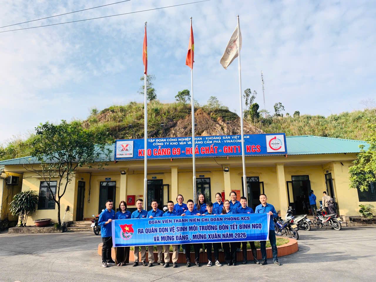 Trong không khí phấn khởi mừng Đảng cộng sản Việt Nam tròn 96 mùa Xuân và chuẩn bị đón Tết Nguyên đán Bính Ngọ, Đoàn Thanh niên Công ty Kho vận và cảng Cẩm Phả - Vinacomin đã tổ chức đợt ra quân tổng vệ sinh môi trường trên toàn bộ các khu vực sản xuất, kho bãi và văn phòng làm việc.