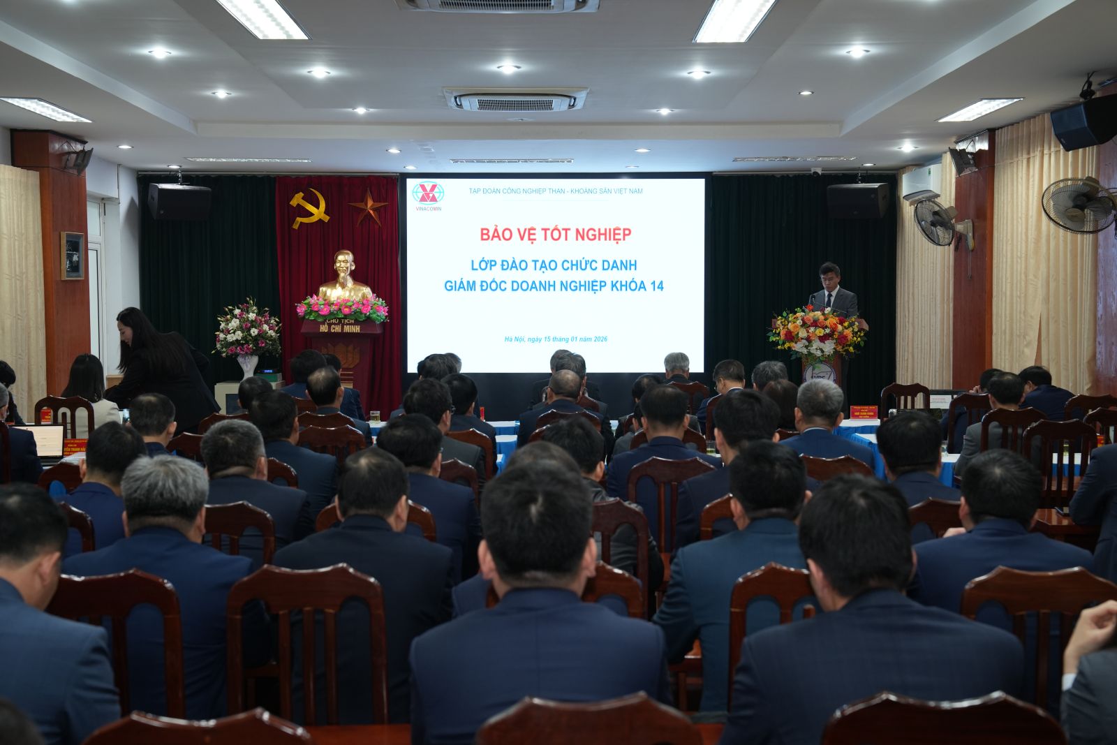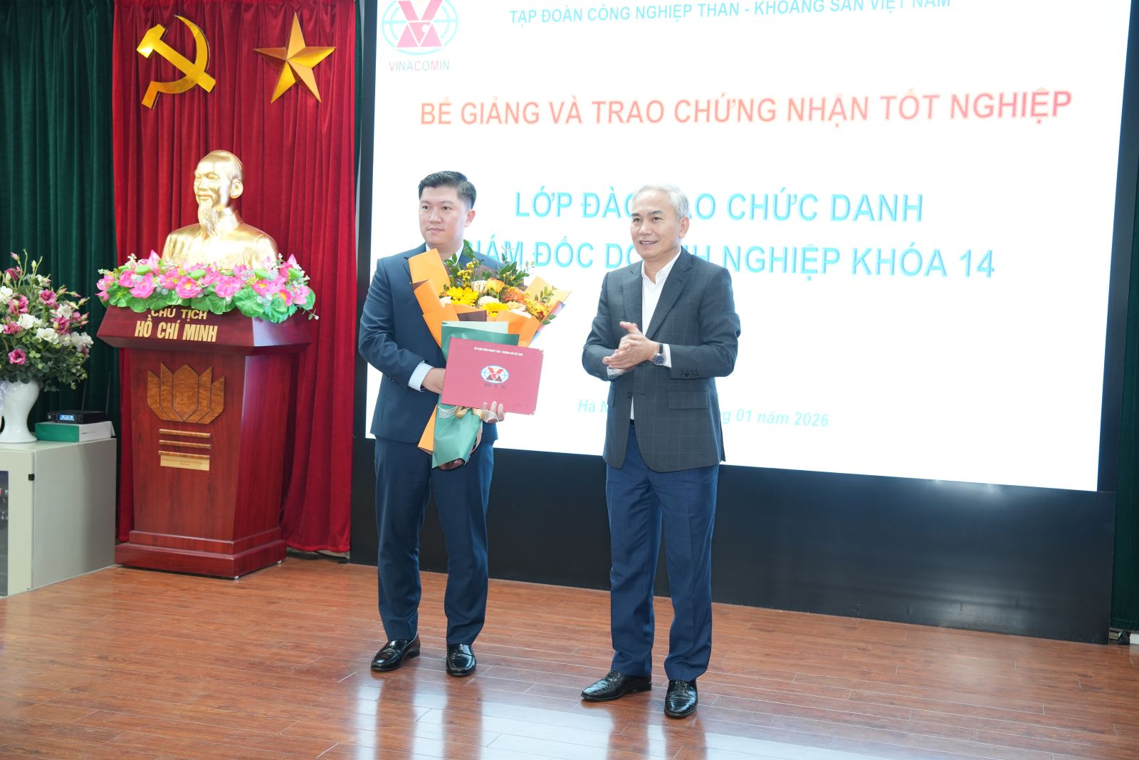 Kết thúc phần thi sát hạch, thừa ủy quyền của Tổng Giám đốc TKV, đồng chí Nguyễn Quốc Tuấn - Trưởng ban Tổ chức Nhân sự Tập đoàn đã công bố Quyết định của Tổng Giám đốc Tập đoàn về việc công nhận tốt nghiệp và trao chứng nhận tốt nghiệp Chương trình đào tạo chức danh Giám đốc doanh nghiệp Khóa 14 cho 36 học viên. Trong đó, 01 học viên được xếp loại Xuất sắc, 30 học viên xếp loại Giỏi và 5 học viên xếp loại Khá, thể hiện chất lượng và hiệu quả của chương trình đào tạo.