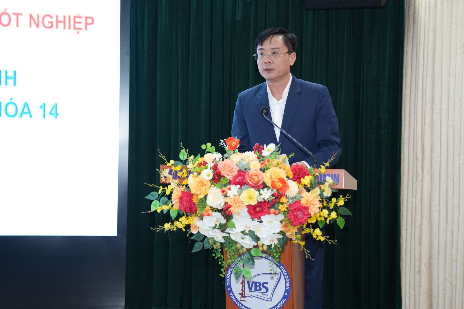 Đồng chí Vũ Anh Tuấn - Tổng Giám đốc Tập đoàn, Phó Chủ tịch Hội đồng chấm tốt nghiệp nhấn mạnh: Đào tạo, bồi dưỡng đội ngũ cán bộ quản lý doanh nghiệp là nhiệm vụ chiến lược, có ý nghĩa quyết định đối với sự phát triển ổn định, bền vững của TKV.