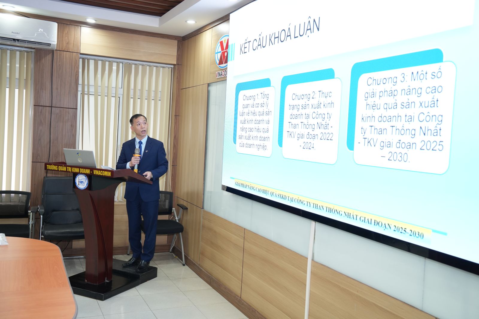 Ngay sau phần khai mạc, Hội đồng chấm tốt nghiệp đã tổ chức sát hạch, bảo vệ tốt nghiệp đối với các học viên tại các tiểu ban chuyên môn. Nội dung sát hạch tập trung đánh giá toàn diện kiến thức quản trị doanh nghiệp, khả năng phân tích, hoạch định chiến lược, kỹ năng tổ chức điều hành, xử lý tình huống thực tiễn gắn với đặc thù ngành Than - Khoáng sản. Quá trình sát hạch được triển khai nghiêm túc, chặt chẽ, bảo đảm đúng quy chế, phản ánh thực chất năng lực của từng học viên.