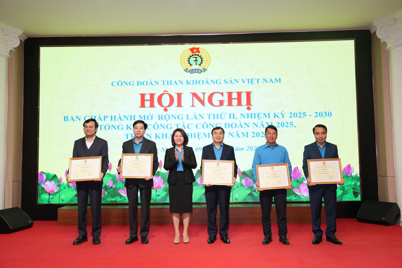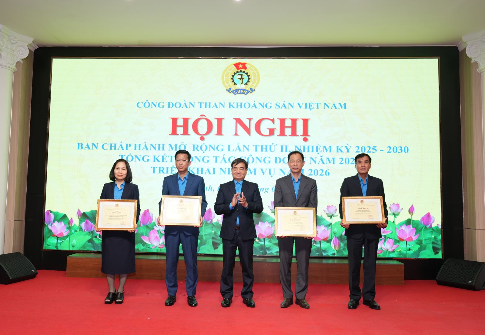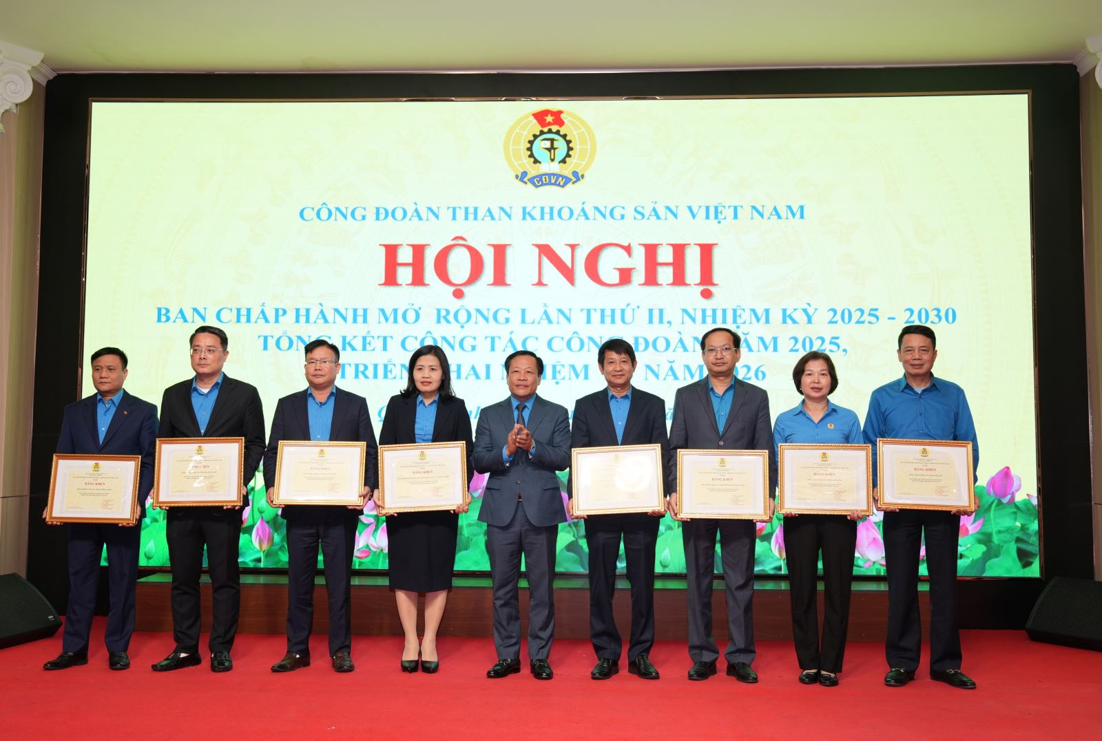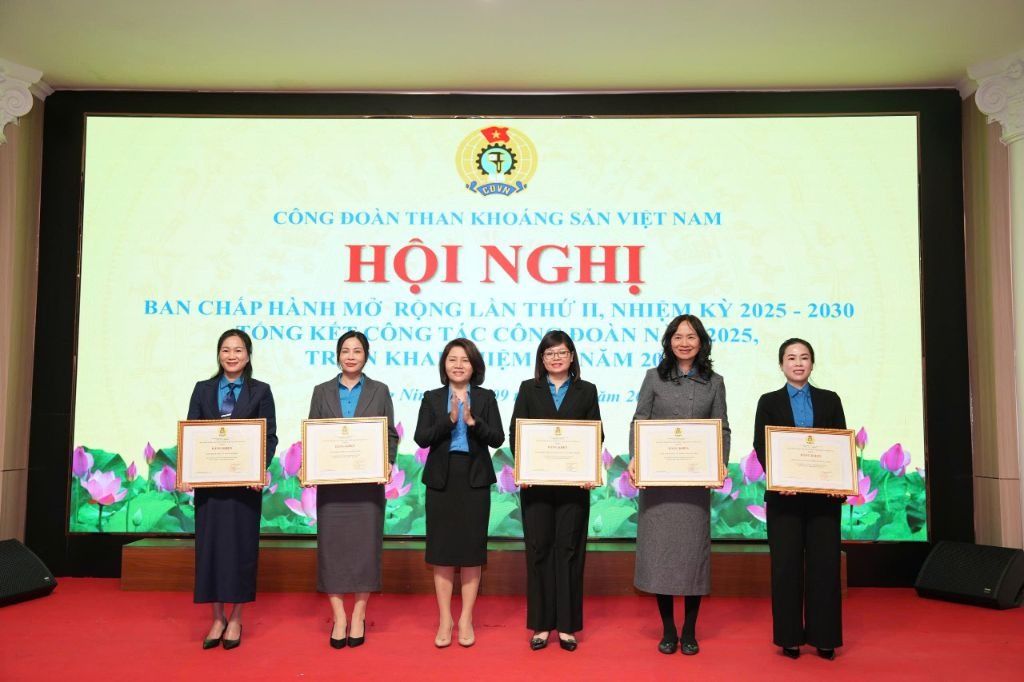 Tại hội nghị, Công đoàn TKV đã công bố các quyết định khen thưởng và tổ chức trao tặng cờ thi đua, Bằng khen của Tổng Liên đoàn lao động Việt Nam cho các tập thể có thành tích xuất sắc. Công đoàn TKV khen thưởng 13 Công đoàn cơ sở “Hoàn thành xuất sắc nhiệm vụ” năm 2025 và khen thưởng các chuyên đề cho các Công đoàn cơ sở có thành tích xuất sắc năm 2025.