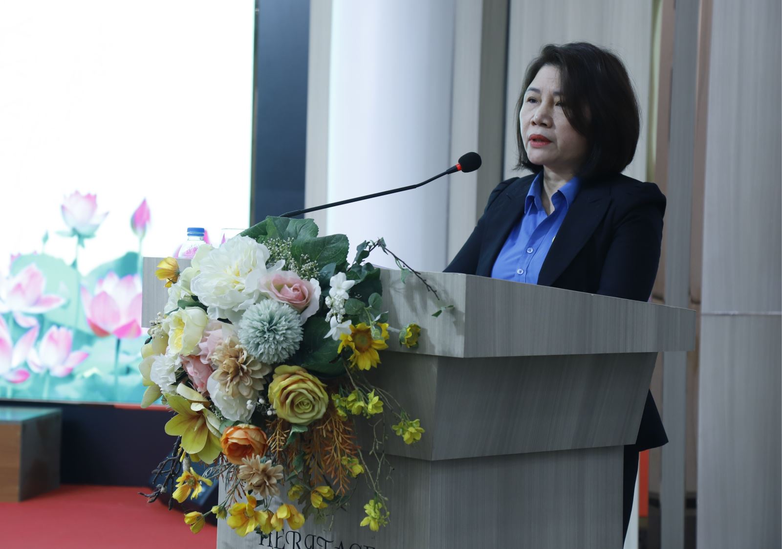 Đồng chí Phạm Hồng Hạnh - Phó chủ tịch Công đoàn TKV báo cáo tổng kết phong trào CNVCLĐ và hoạt động công đoàn năm 2025; Nghị quyết của Ban Chấp hành Công đoàn TKV về chỉ đạo phong trào CNVCLĐ và hoạt động công đoàn năm 2026.