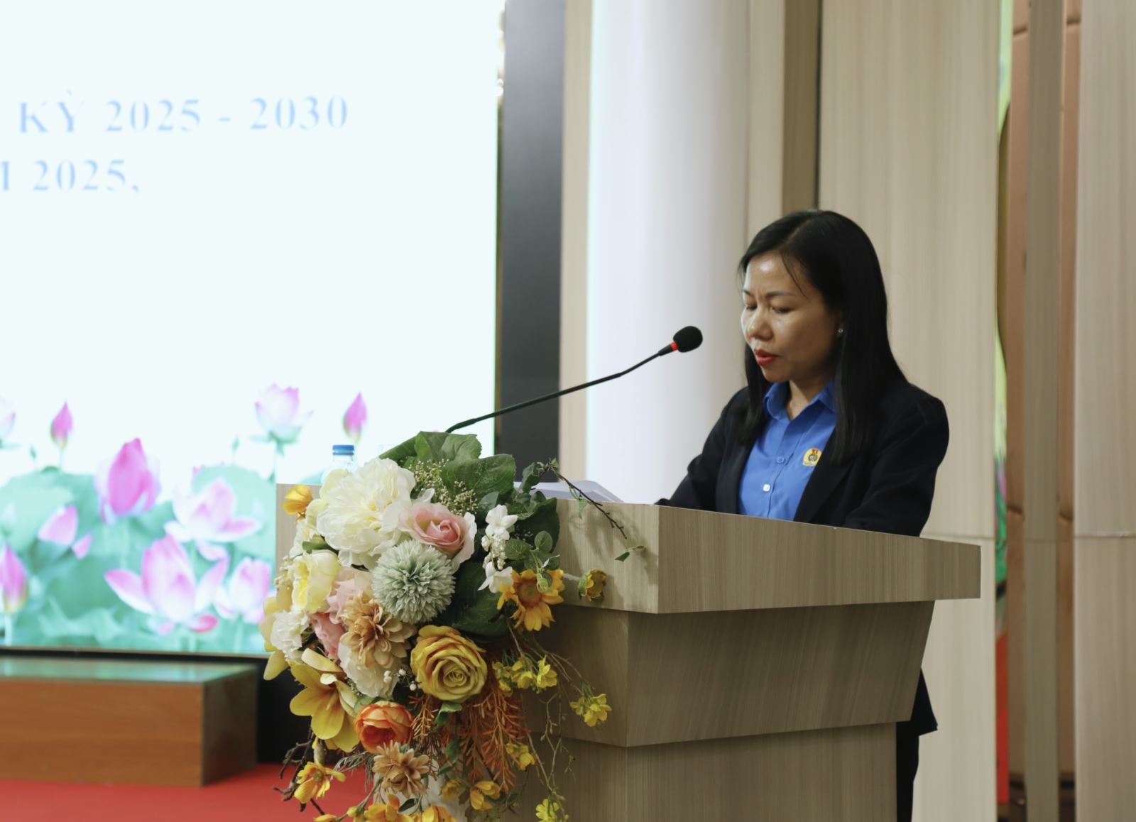 Đồng chí Nguyễn Thị Minh - Phó chủ tịch Công đoàn TKV báo cáo công khai dự toán tài chính công đoàn năm 2026