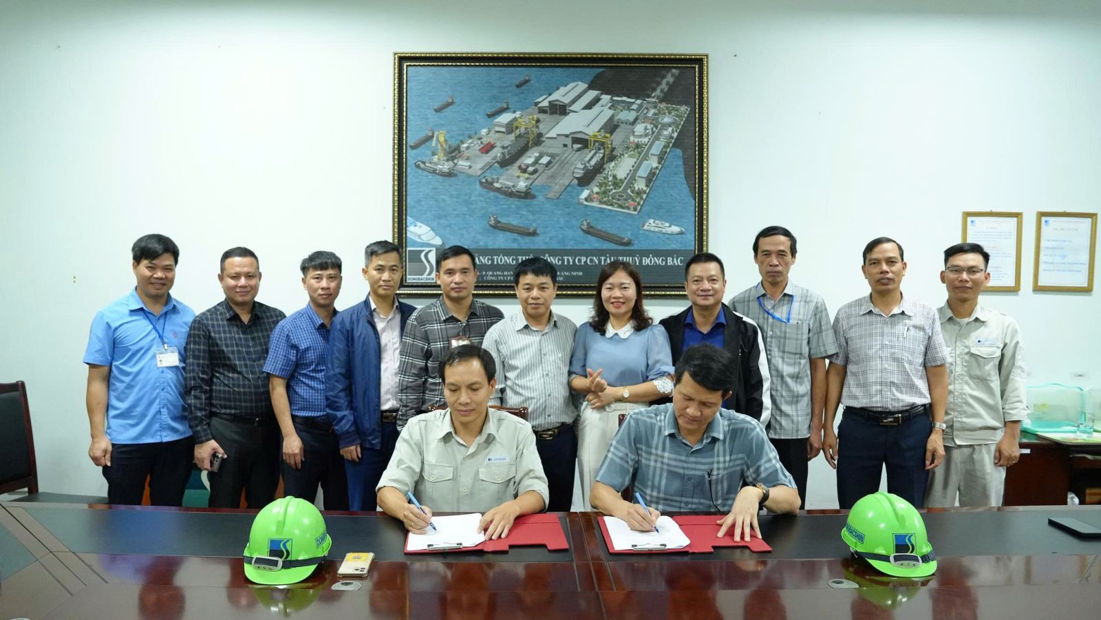 Đại diện Công ty Công nghiệp tàu thuỷ Đông Bắc có đồng chí Nguyễn Văn Chí - Giám đốc Công ty. Về phía Công ty có đ/c Bùi Minh Hiếu - Phó giám đốc, cùng đại diện một số phòng ban, đơn vị của 2 Công ty.