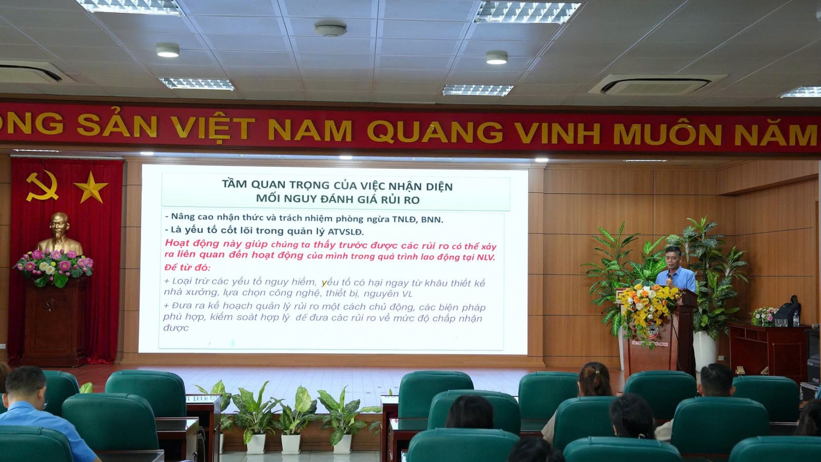 Đồng chí yêu cầu các học viên tham gia đầy đủ, nghiêm túc nhằm tiếp thu các kiến thức từ giảng viên để áp dụng hiệu quả vào thực tế vị trí công việc của mình, góp phần xây dựng môi trường làm việc an toàn, không để xảy ra sự cố mất an toàn lao động.