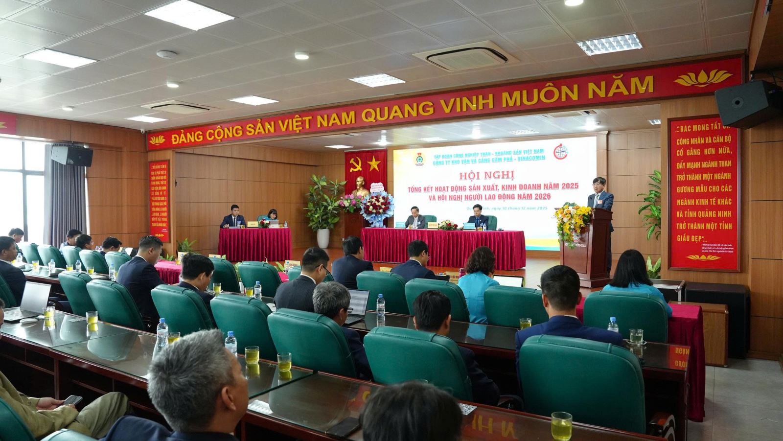 Sáng ngày 10/12/2025, Công ty Kho vận và cảng Cẩm Phả - Vinacomin đã tổ chức thành công Hội nghị tổng kết hoạt động SXKD năm 2025 và Hội nghị Người lao động năm 2026. Dự hội nghị có đồng chí Nguyễn Hoàng Trung - Thành viên HĐTV Tập đoàn TKV, đ/c Lê Thanh Xuân - Chủ tịch Công đoàn TKV, đ/c Nguyễn Đức Vịnh - Phó ban tuyên giáo Đảng uỷ TKV, đại diện các Ban chuyên môn Tập đoàn cùng 145 đại biểu đại diện cho tập thể CBCNV, NLĐ trong toàn Công ty.