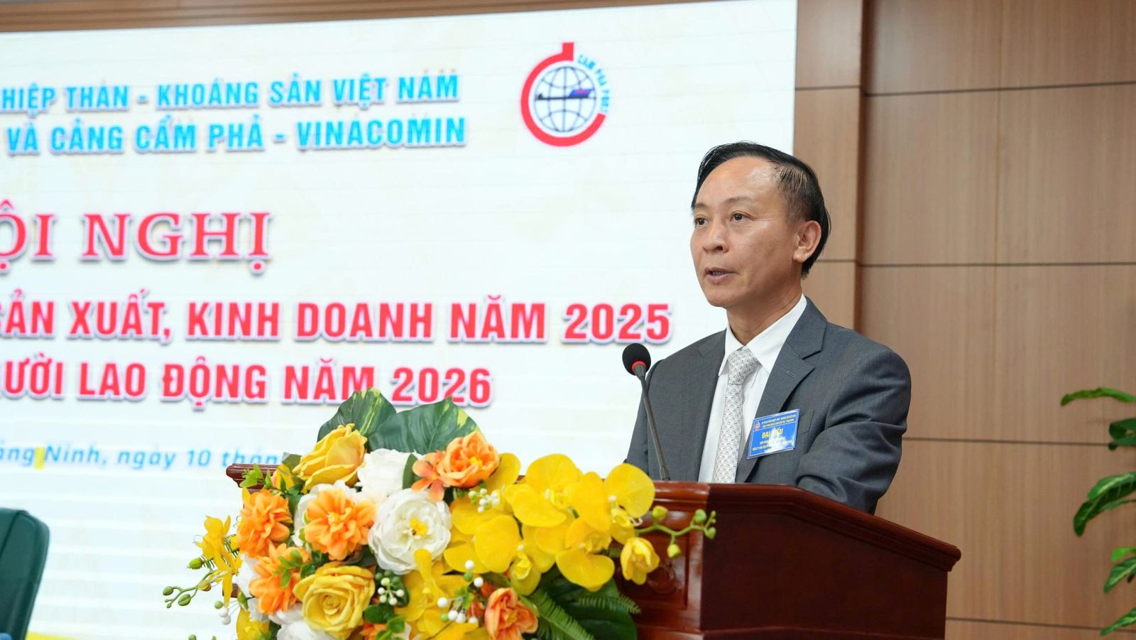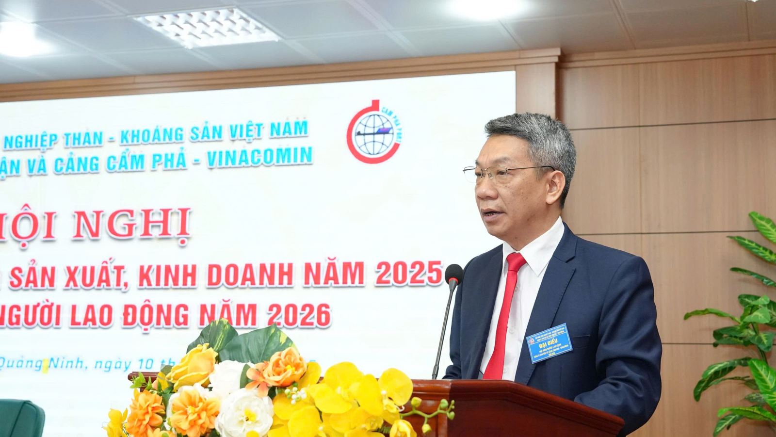 Đ/c Nguyễn Hoàng Trung - UV BTV Đảng uỷ, thành viên HĐTV TKV phát biểu chia sẻ những khó khăn của Công ty trong năm 2025, khẳng định những đóng góp của Công ty vào việc hoàn thành chung các chỉ tiêu toàn TKV và chỉ đạo định hướng một số nội dung quan trọng triển khai trong năm 2026