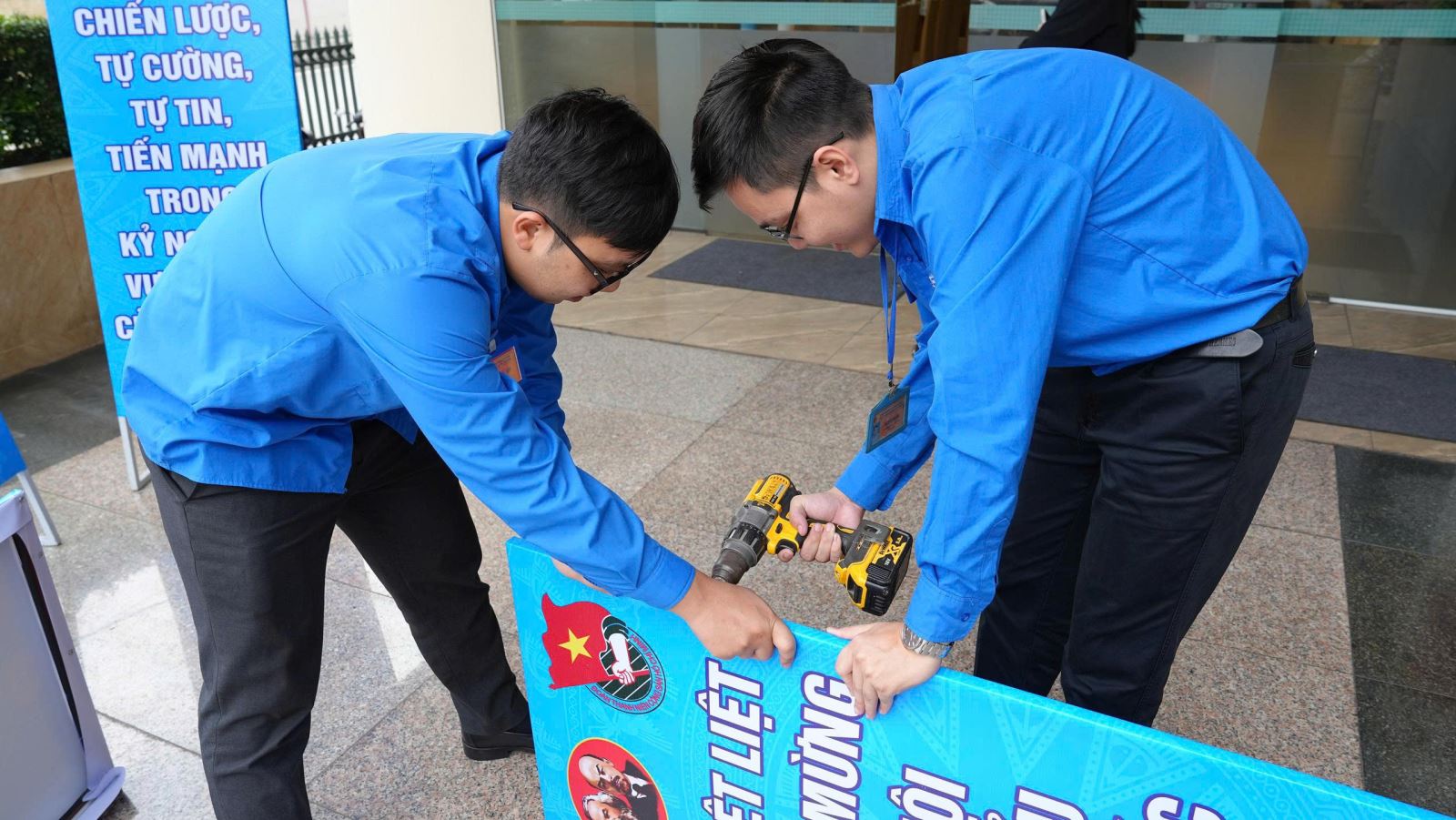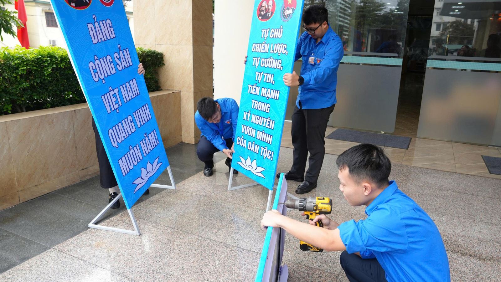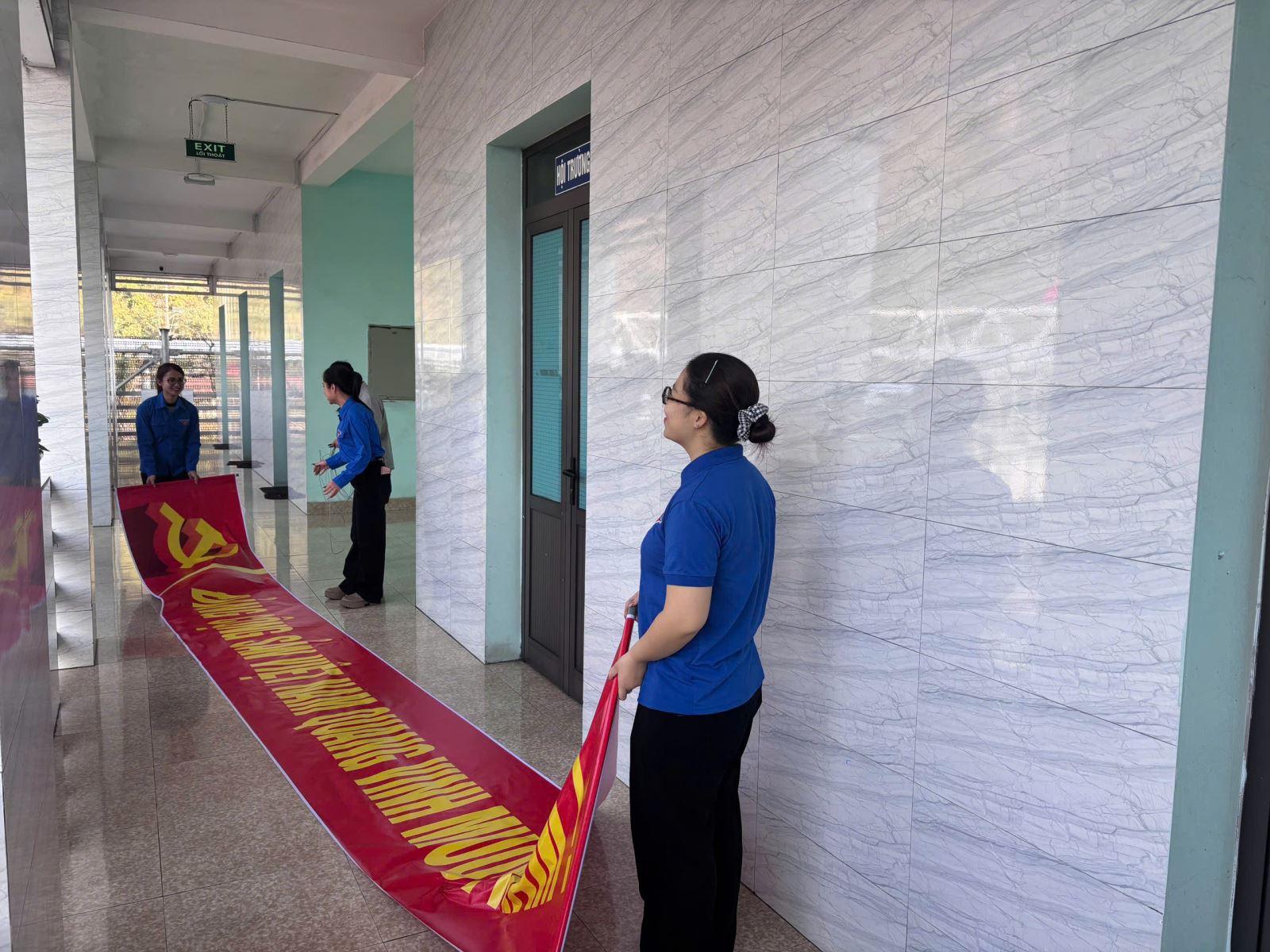 Công tác chuẩn bị, lựa chọn thay thế các cờ mới, các nội dung băng rôn tuyên truyền tại các vị trí trang trọng, dễ nhìn ở các đơn vị