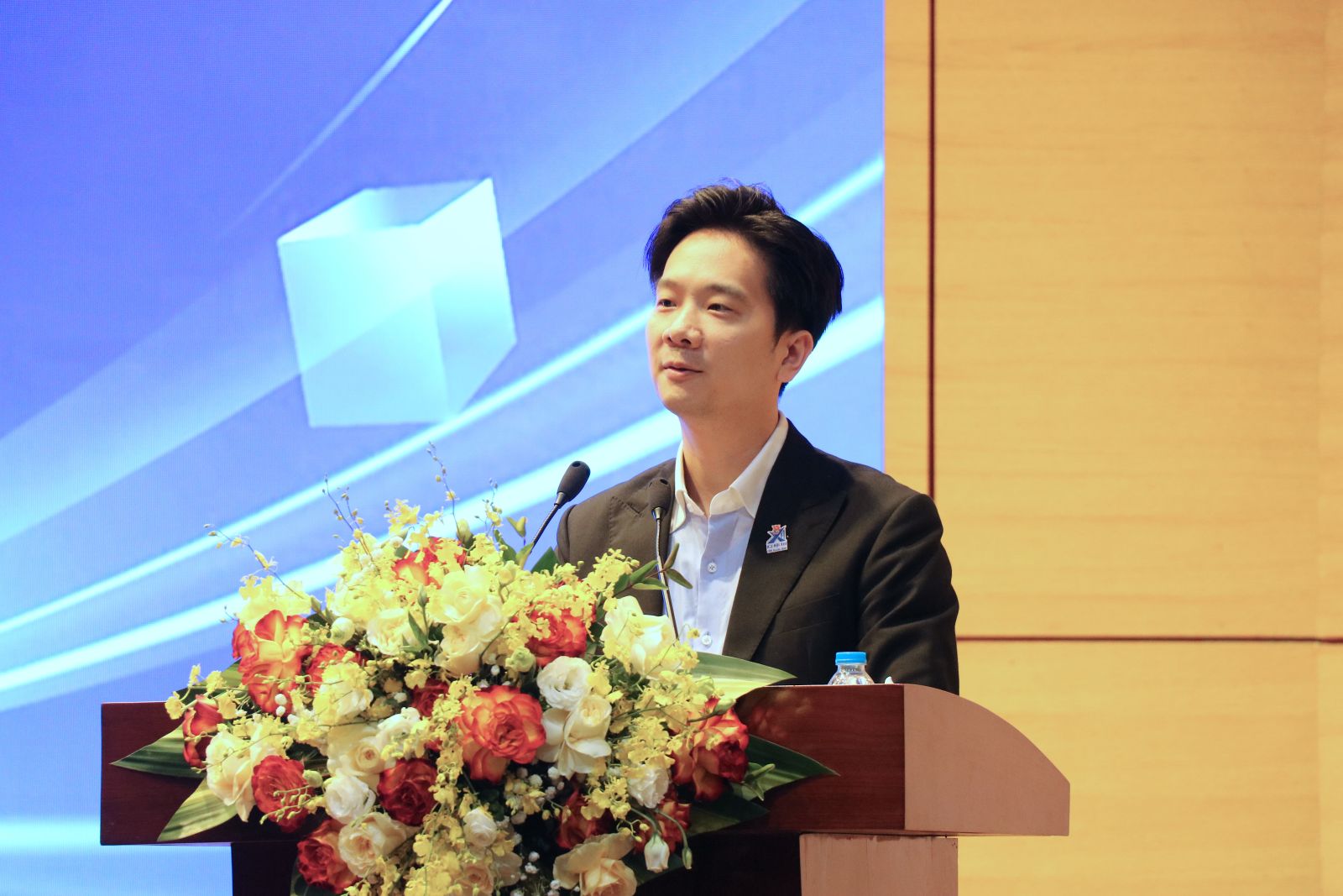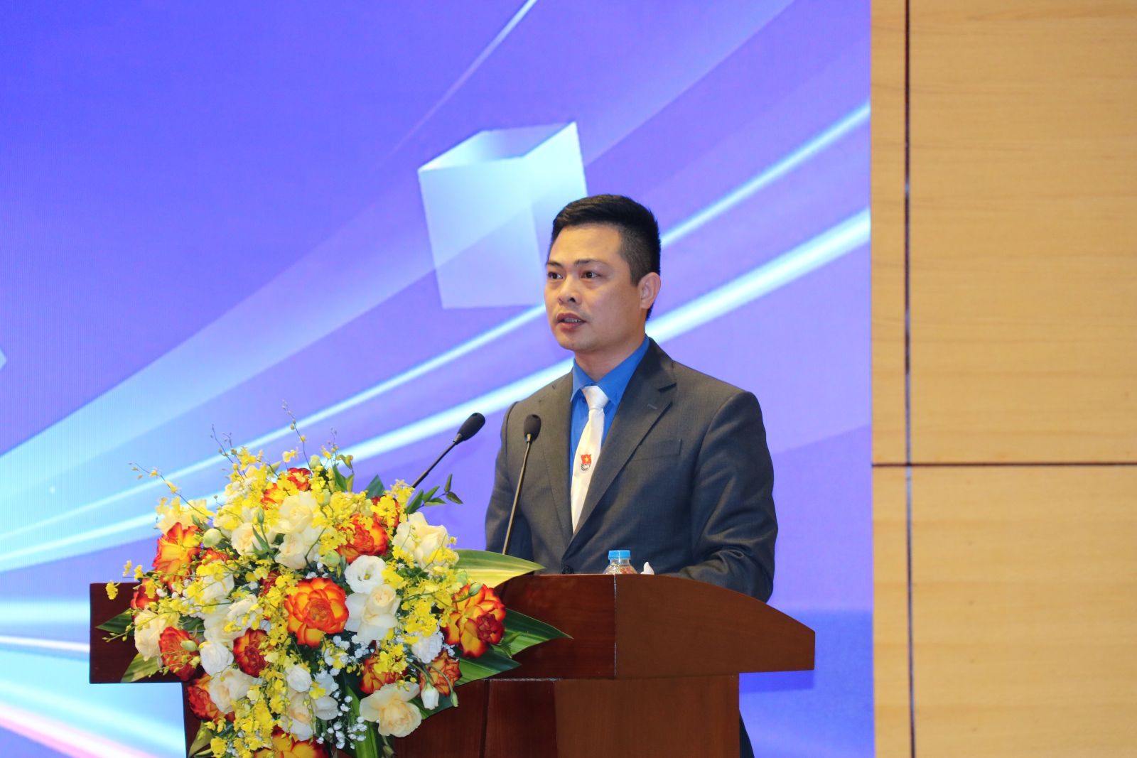 Bí thư Đoàn thanh niên Công ty CP Công nghiệp Ô tô Vũ Việt Long tham luận các giải pháp phát huy phong trào “Tuổi trẻ sáng tạo”, tiên phong trong tiến trình chuyển đổi số của TKV.