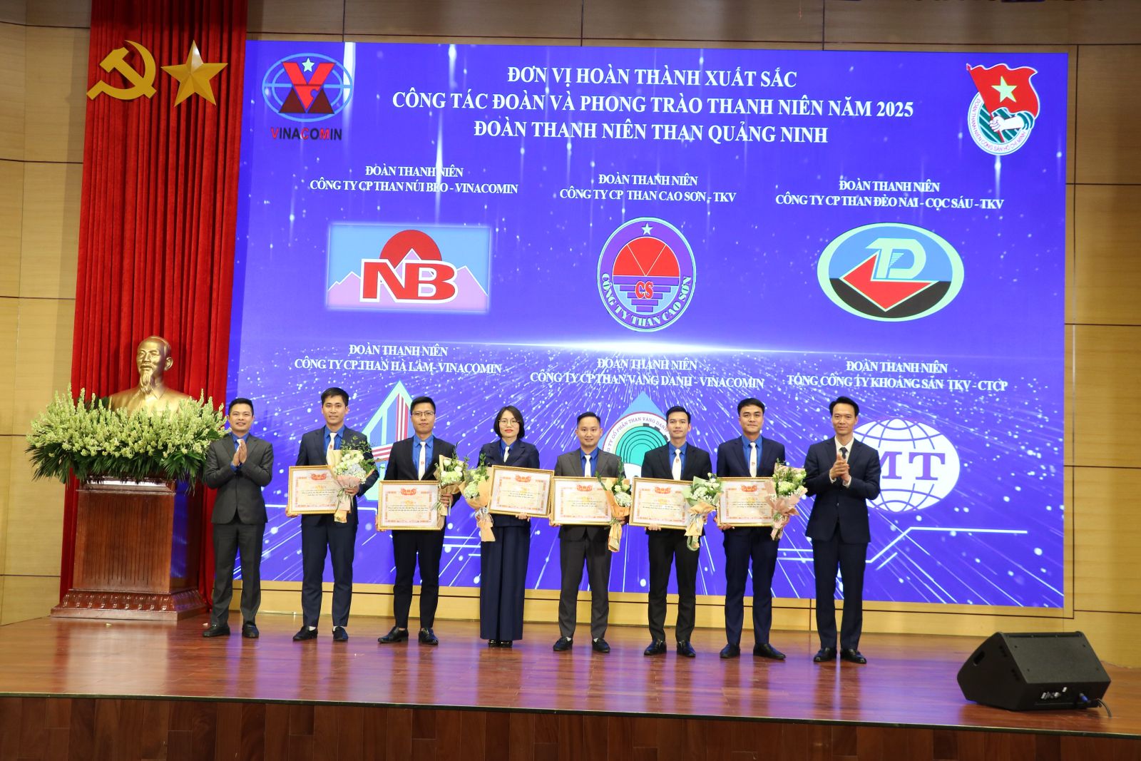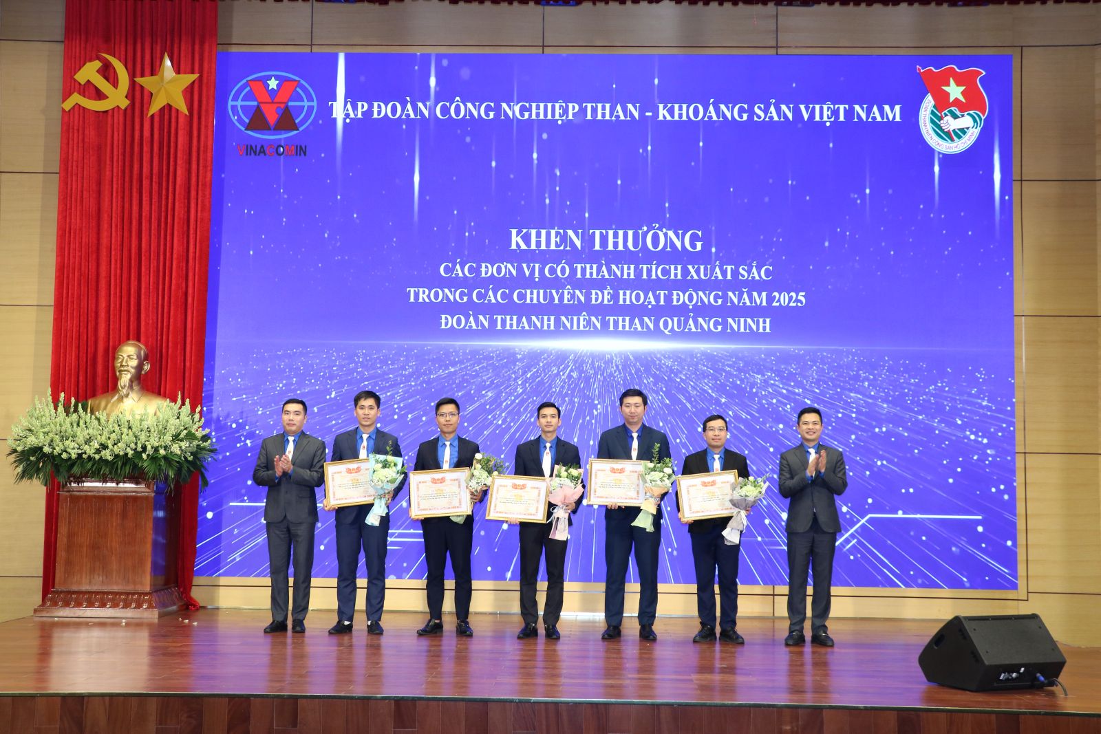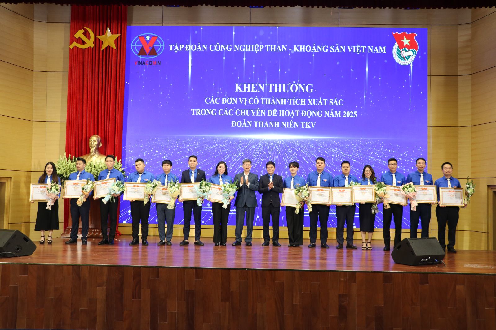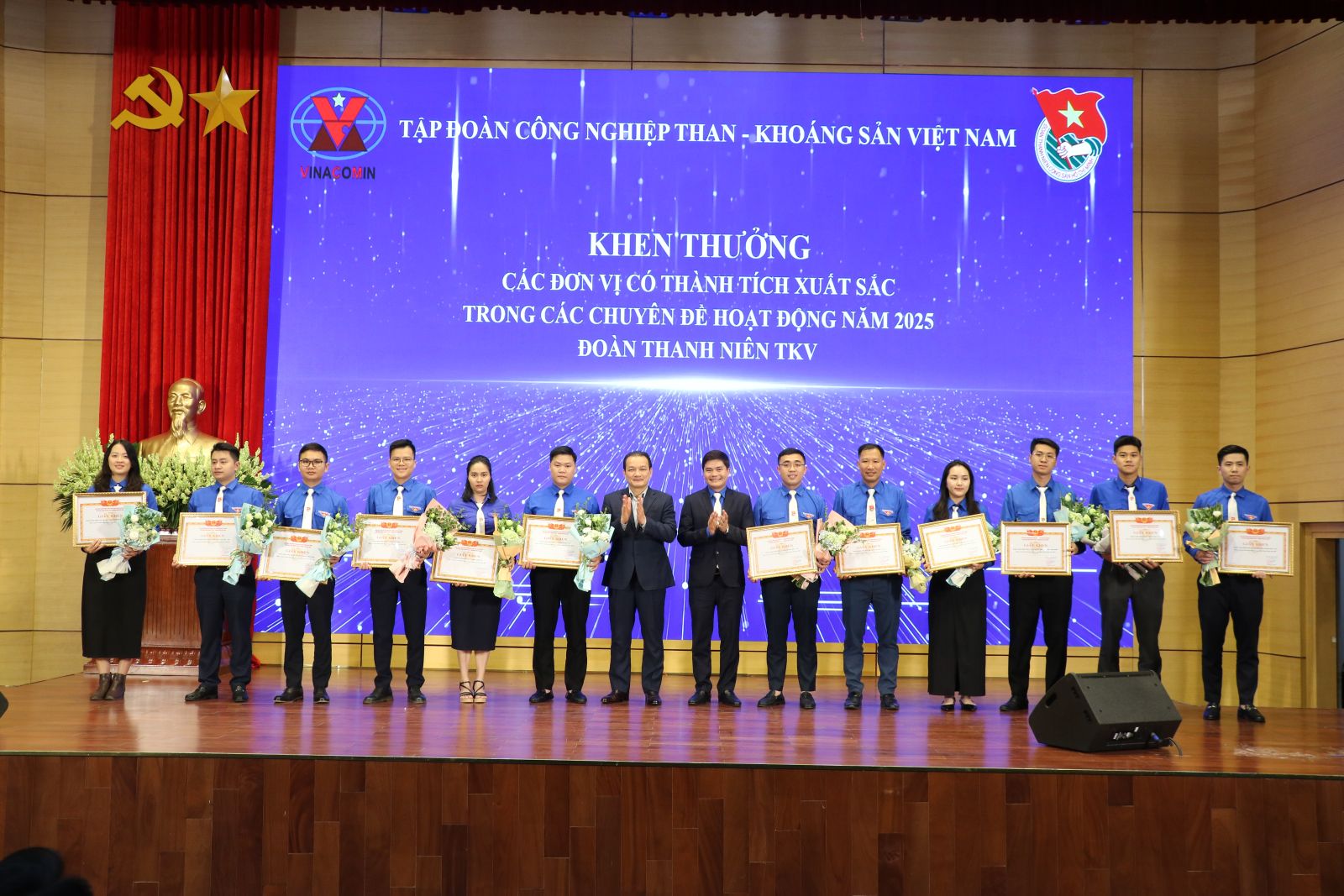 Tại hội nghị, Đoàn Thanh niên TKV trao khen thưởng cho Công ty Than Khe Chàm - TKV là đơn vị xuất sắc dẫn đầu công tác Đoàn và phong trào thanh niên năm 2025; 07 đơn vị hoàn thành xuất sắc công tác Đoàn và phong trào thanh niên năm 2025; 26 tập thể có thành tích xuất sắc trong các chuyên đề hoạt động năm 2025. Đồng thời khen thưởng các tập thể, cá nhân có thành tích tham gia cuộc thi trực tuyến “Tuyên truyền về công tác An toàn vệ sinh lao động năm 2025”.