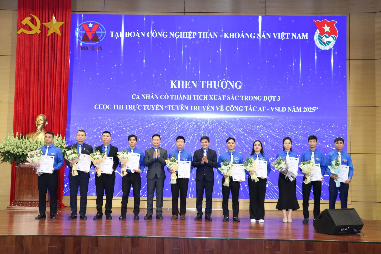 Trong lĩnh vực an toàn - vệ sinh lao động và bảo vệ môi trường, tuổi trẻ TKV tích cực đổi mới nội dung, hình thức tuyên truyền. Cuộc thi trực tuyến tuyên truyền về AT-VSLĐ năm 2025 thu hút hơn 99 nghìn tài khoản, với trên 1,1 triệu lượt dự thi, tạo sức lan tỏa mạnh mẽ trong đoàn viên, thanh niên và người lao động. Các hoạt động bảo vệ môi trường được đẩy mạnh, trồng mới hơn 178.000 cây xanh, góp phần thực hiện hiệu quả chiến lược “Xanh hóa môi trường khai thác mỏ” của Tập đoàn.
