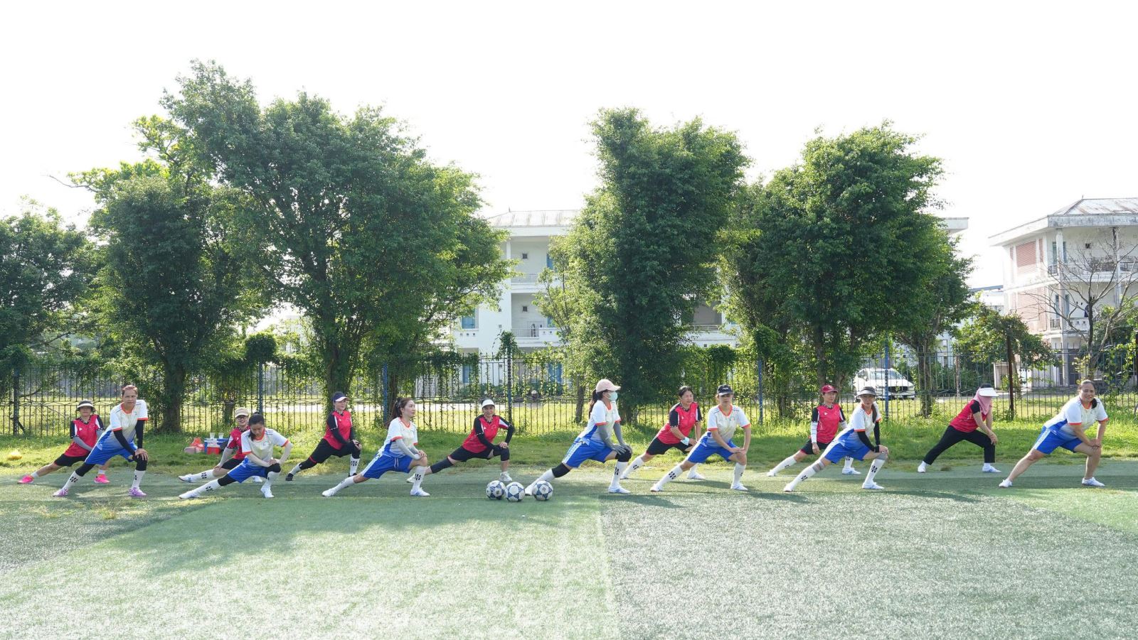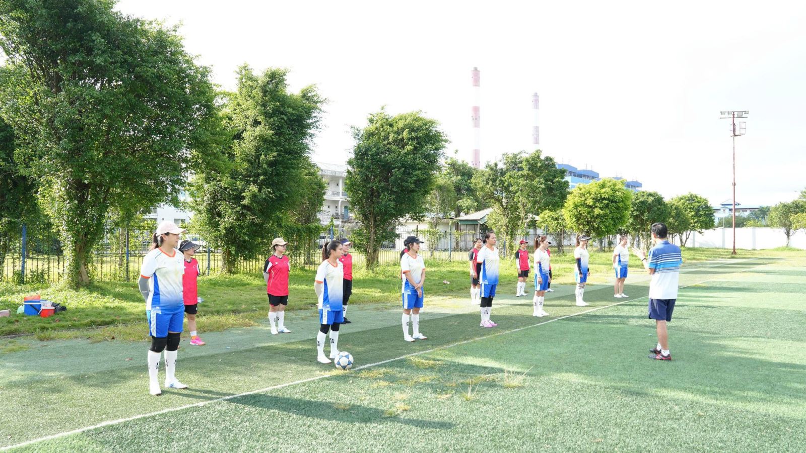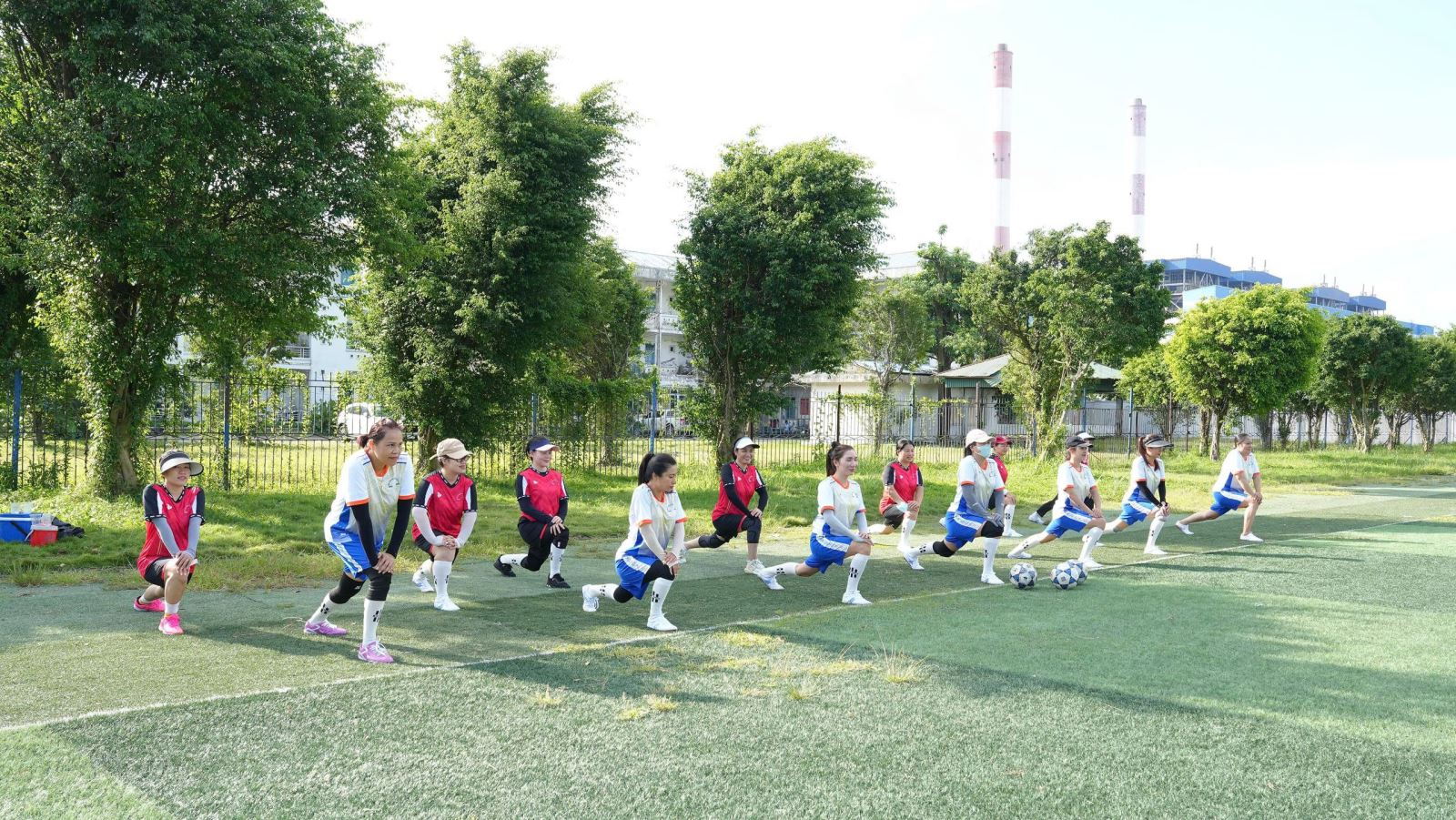 Quang cảnh tập luyện của đội bóng nữ Công ty