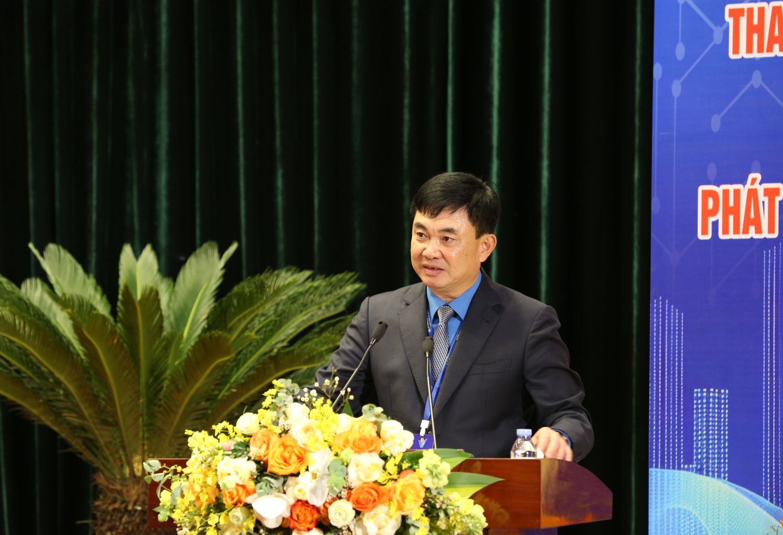 Phó Chủ tịch Tổng LĐLĐ Việt Nam phát biểu chỉ đạo và tặng hoa chúc mừng Đại hội