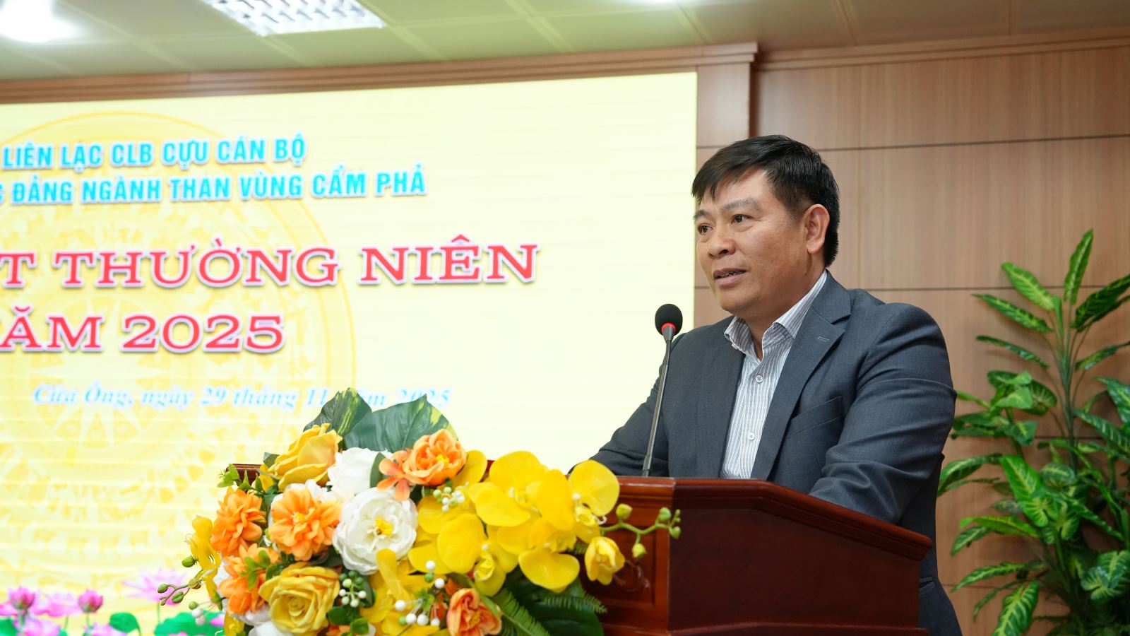 Đại diện đơn vị đăng cai hội nghị, đồng chí Trịnh Quốc Trung - Phó Bí thư thường trực Đảng uỷ Công ty vui mừng khi được đón tiếp các đồng chí nguyên cán bộ hưu trí các đơn vị vùng Cẩm Phả trực thuộc Đảng bộ TKV đến thăm và tổ chức chương trình gặp mặt thường niên của Hội, đồng chí đã báo cáo nhanh tình hình hoạt động, các mặt công tác của Đảng bộ Công ty Kho vận và cảng CP trong năm 2025 và bày tỏ sẽ tiếp tục được đón nhận những tình cảm, sự quan tâm, ủng hộ, động viên của các đồng chí trong CLB trong việc thực hiện nhiệm vụ của Đảng bộ Công ty thời gian tới.