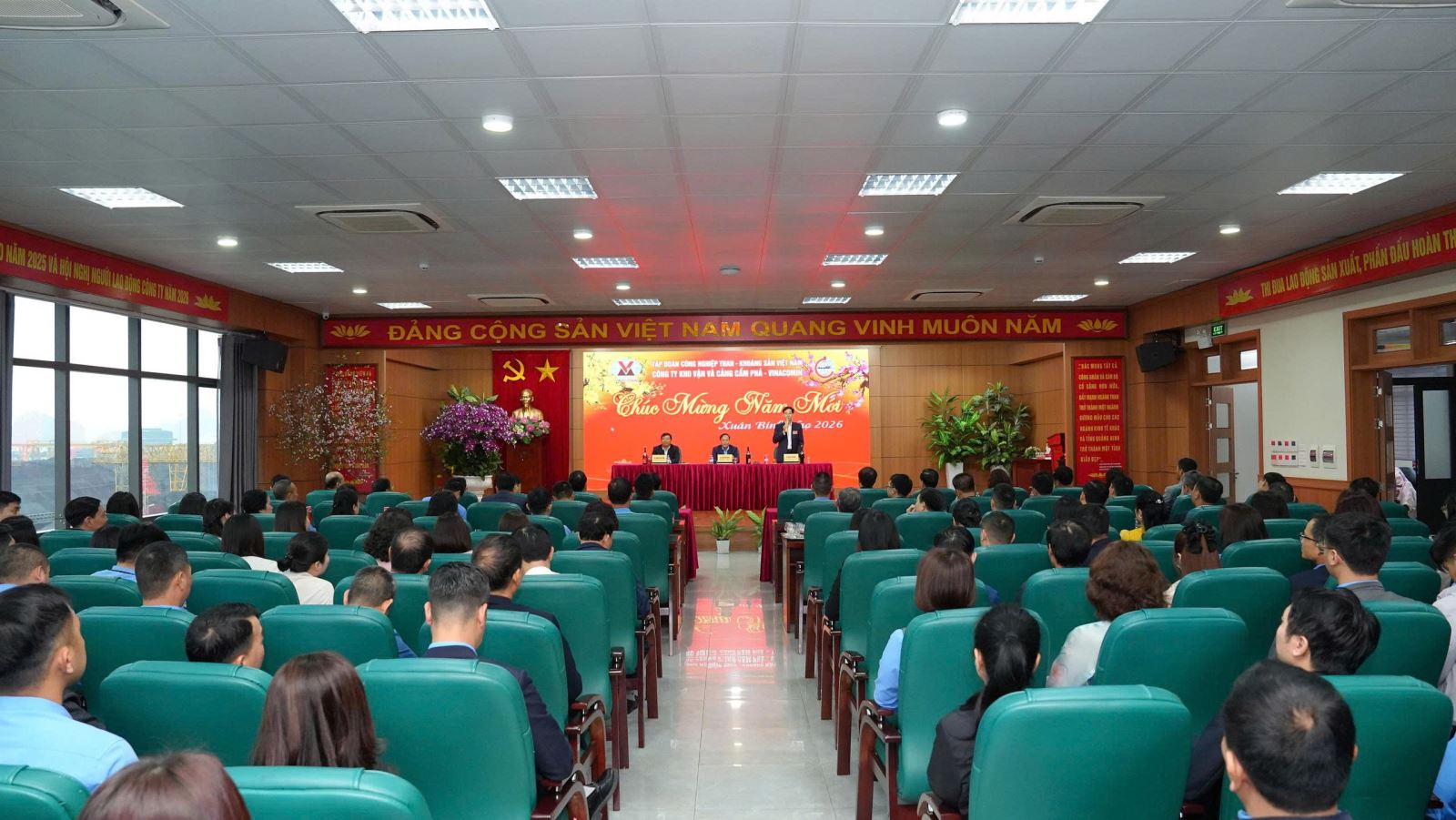 Sáng 23/02 (mùng 7 Tết Bính Ngọ), Công ty Kho vận và cảng Cẩm Phả - Vinacomin tổ chức chương trình khai xuân năm 2026 tại hội trường lớn trong không khí trang trọng, phấn khởi, hào hứng, cùng tin tưởng vào một năm mới mã đáo thành công.