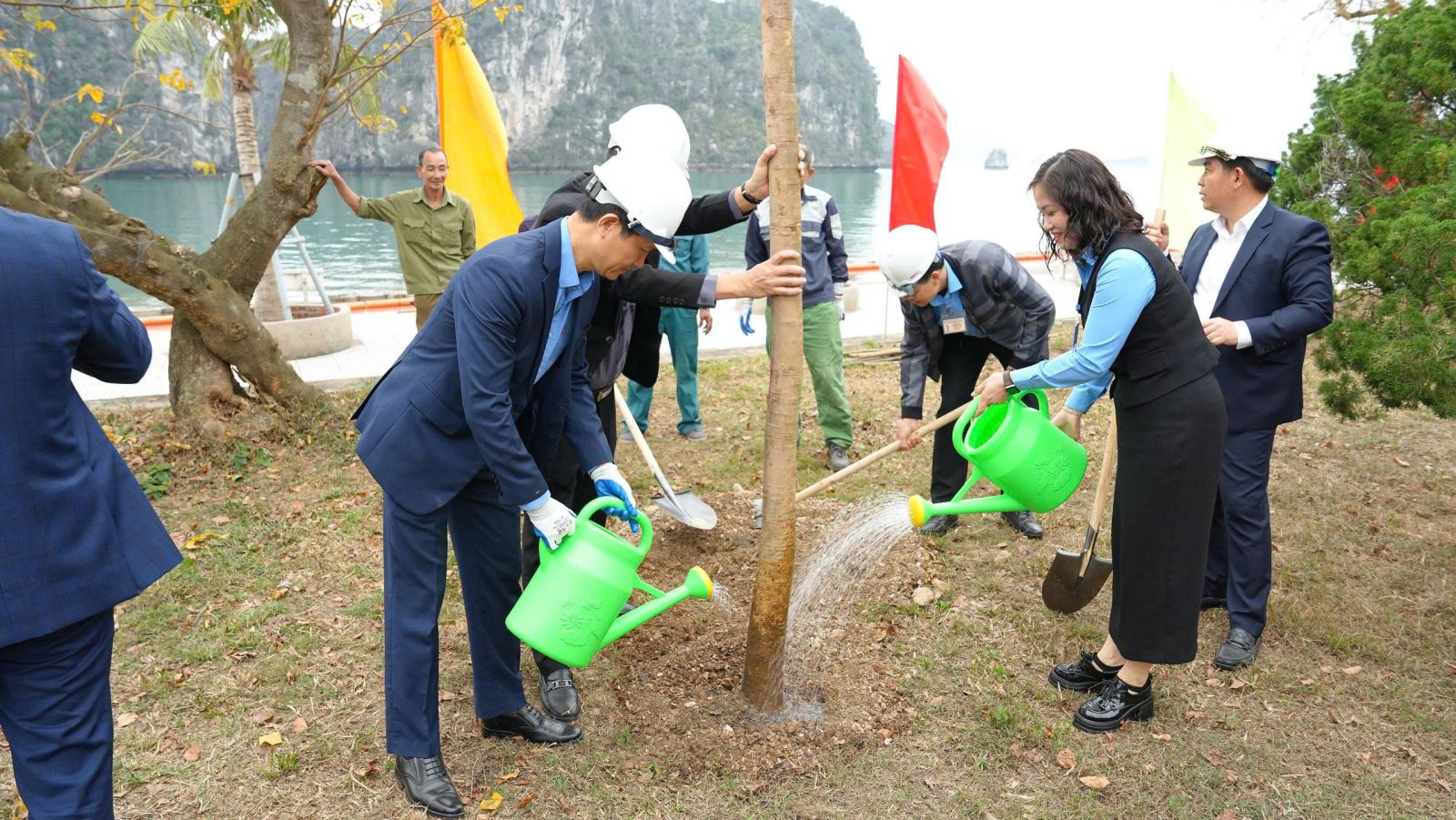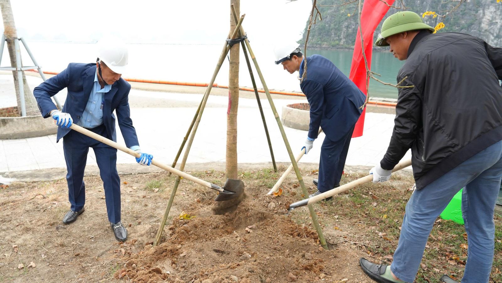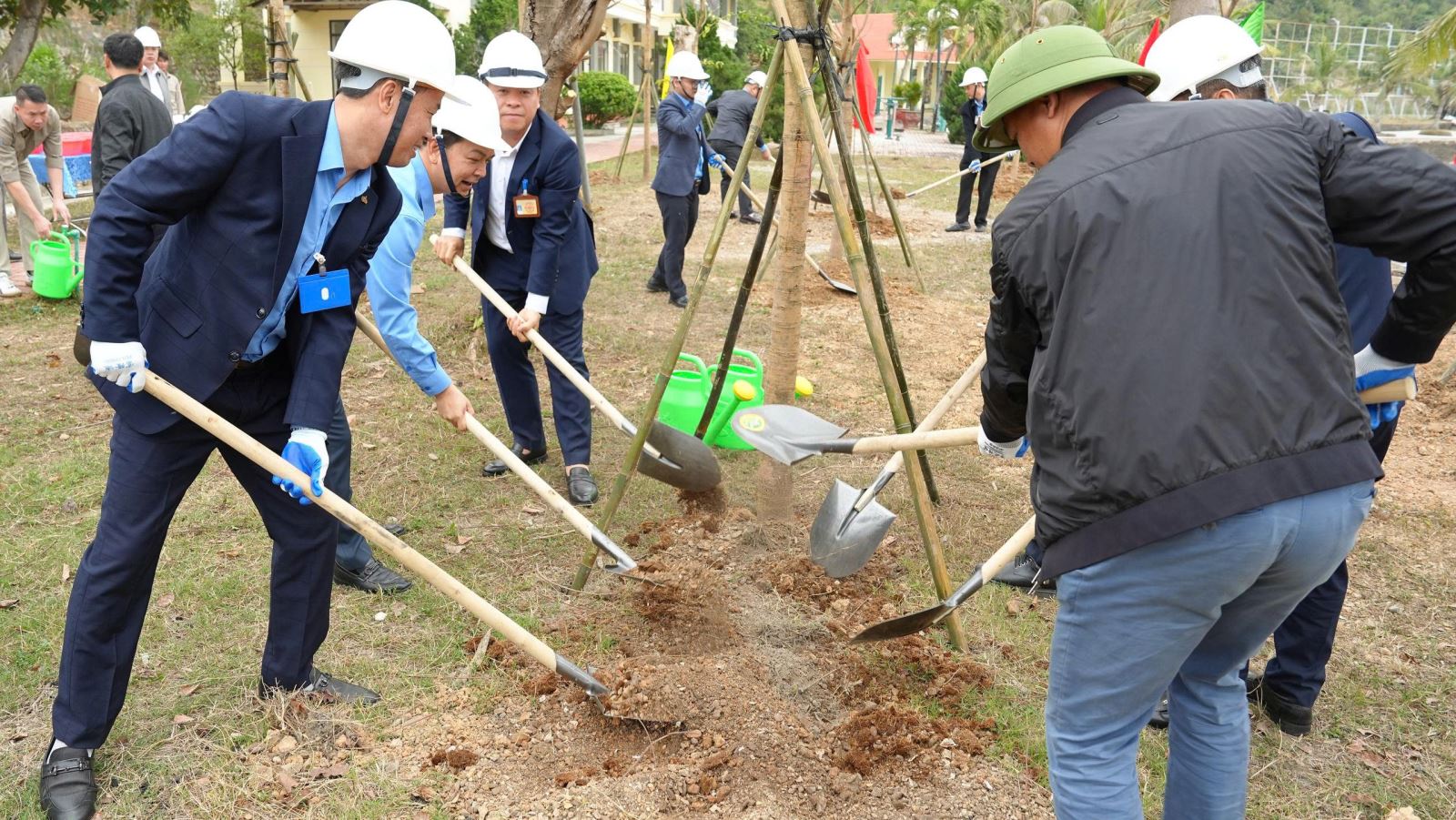 Cùng ngày, Công ty tổ chức chương trình “Tết trồng cây đời đời nhớ ơn Bác Hồ xuân Bính Ngọ 2026” với sự tham gia của các đồng chí lãnh đạo, đại diện các tổ chức đoàn thể, các phòng ban và đông đảo công nhân lao động. Năm nay Công ty trồng một số cây ăn quả và trồng cây phục hồi tại đảo Cống Tây - Thôn Quyết Thắng - Đặc khu Vân Đồn. Hoạt động không chỉ mang ý nghĩa may mắn, tốt lành, tươi tắn để khởi đầu năm mới mà còn thể hiện trách nhiệm với môi trường sau những tàn phá siêu bão Yagi năm 2024 để lại, góp phần phục hồi diện tích cây xanh, tái tạo cảnh quan, hướng tới môi trường làm việc “Xanh - Sạch - Đẹp”, an toàn và bền vững.