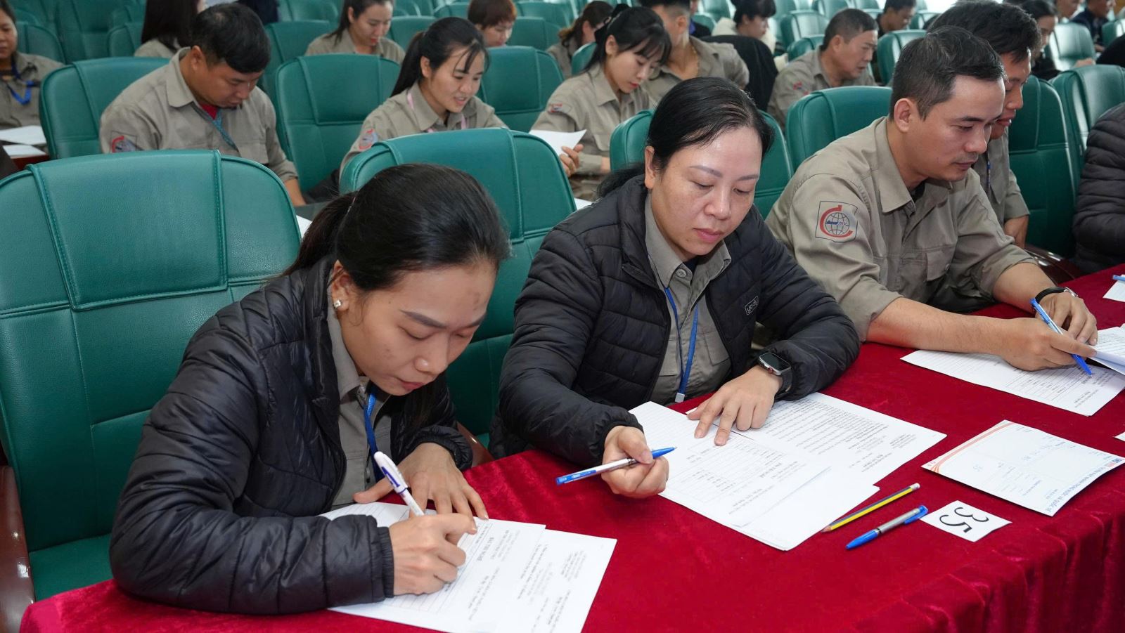 Kỳ thi diễn ra từ ngày 12/12 đến hết ngày 21/12/2025, nội dung thi được chia thành hai phần lý thuyết và thực hành. Phần thi lý thuyết diễn ra vào ngày 12/12 tại hội trường lớn Công ty và được chia làm 4 ca giờ, tại hai địa điểm phòng thi. Bài thi được Hội đồng chấm điểm và thông báo kết quả đến từng cá nhân. Kết thúc phần thi lý thuyết 141 CNKT đủ điều kiện thi thực hành. Phần thi thực hành được diễn ra tại hiện trường các công trường phân xưởng nơi thí sinh công tác.