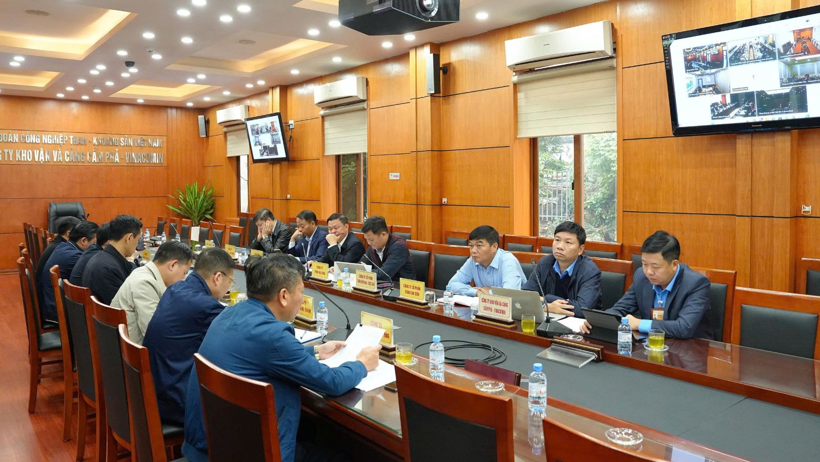 Quang cảnh hội nghị tại điểm cầu Công ty Kho vận và cảng Cẩm Phả