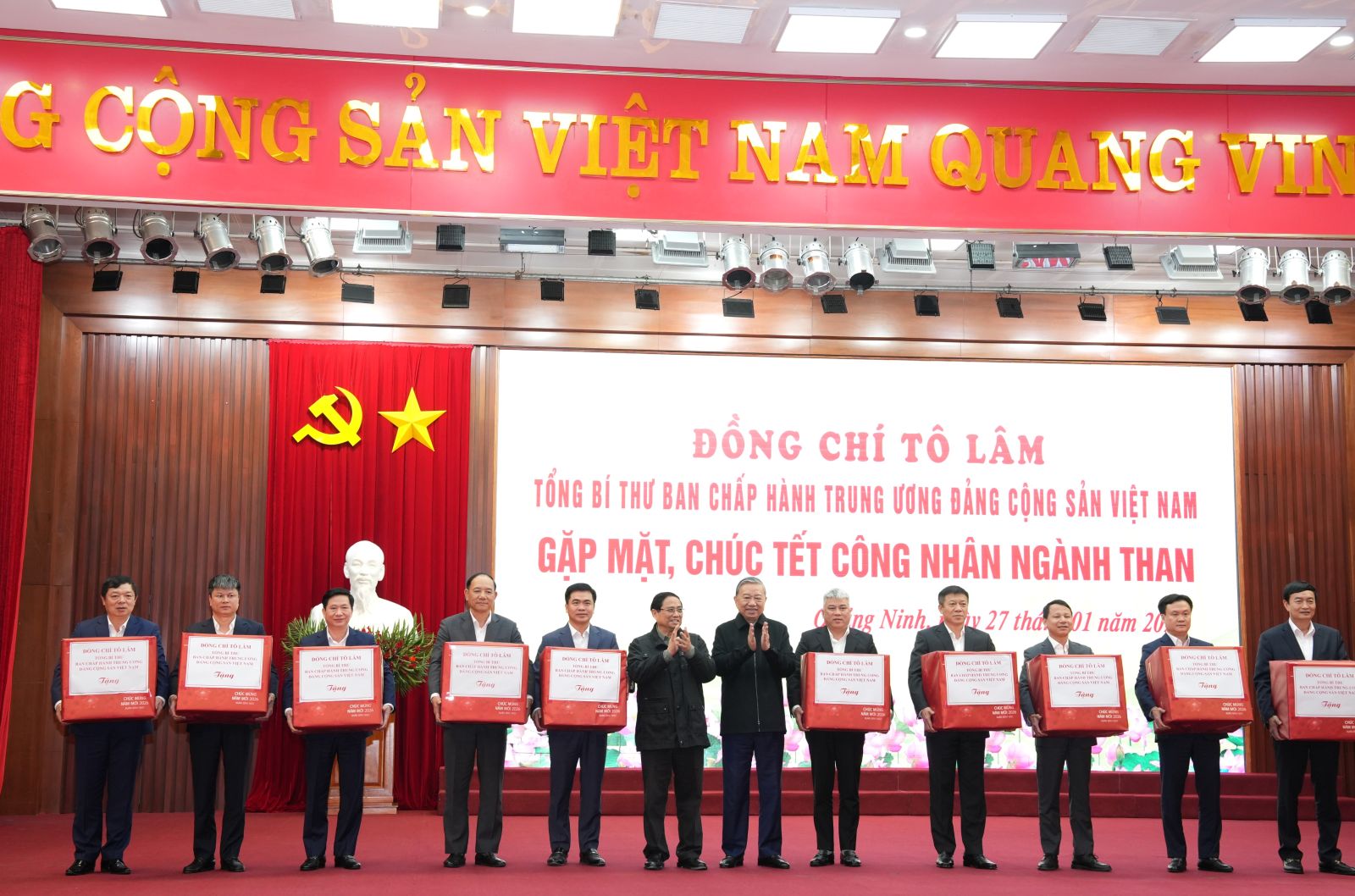 Tổng Bí thư Tô Lâm và Thủ tướng Phạm Minh Chính tặng quà Tết cho công nhân ngành Than