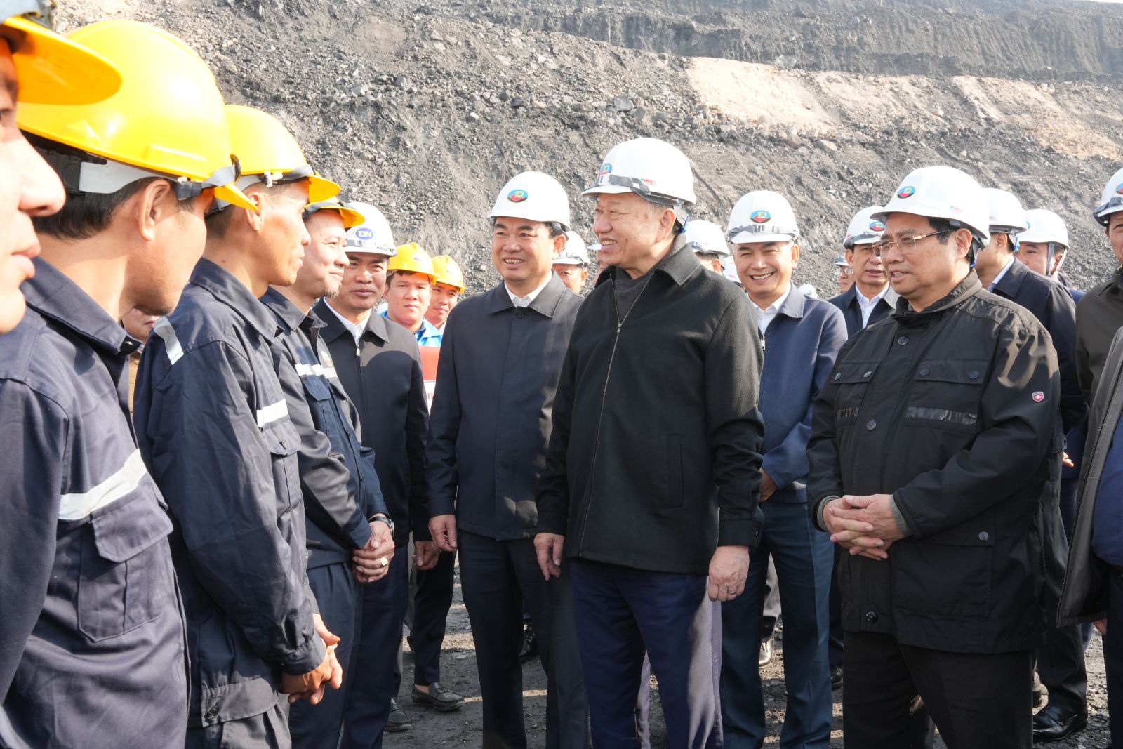 Tổng Bí thư Tô Lâm, Thủ tướng Phạm Minh Chính cùng Đoàn công tác Trung ương thăm khai trường sản xuất Công ty CP Than Đèo Nai - Cọc Sáu