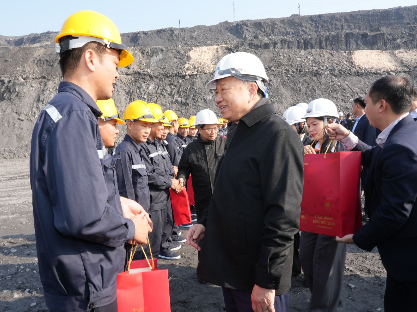 Nhân dịp này, Tổng Bí thư Tô Lâm và Thủ tướng Chính phủ Phạm Minh Chính đã tặng quà Tết cho công nhân lao động ngành Than, thể hiện tình cảm, sự quan tâm sâu sắc của Đảng, Nhà nước đối với công nhân lao động ngành Than, lực lượng trực tiếp làm ra của cải, đóng góp cho sự nghiệp công nghiệp hóa, hiện đại hóa đất nước.